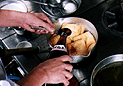water and press it using chopsticks. This process removes extra oil from