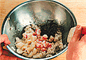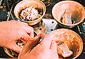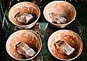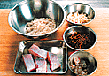 |  |  | | 31.仕込みの終了した材料です。 | 32.蓮根のボールの中に木耳、海老、百合根を加えよく混ぜます。 | 33.器に甘鯛を盛り酒を少量かけます。 |  |  |  | | 34.巻きすをのせます。 | 35.蓋と枠の間に布巾を挟み強火で10分間蒸します。 | 36.甘鯛の蒸し上がった状態です。 |  |  |  | | 37.器の底に溜まっている汁を切ります。 | 38.蓮根の生地をのせます。 | 39.たっぷり目にのせ、更に10分間蒸します。 |  |  |  | | 40.鍋に出し300ccを入れ火にかけ味醂を50cc加えます。 | 41.濃口醤油を50cc加えます。 | 42.沸騰したら水溶きの葛粉できつい目に濃度をつけます。 |  |  | | | 43.蒸し上がった蓮蒸しに庵をたっぷりかけます。 | 44.山葵の卸しを天に添えます。 | |