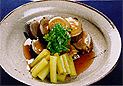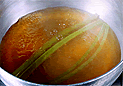 直ちにざるに上げ扇いで急激に冷ます。煮汁も冷たく冷ます。 |