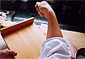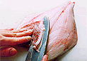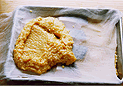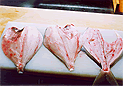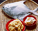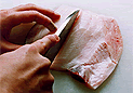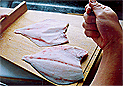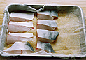 まながつおを皮を下にして置き更に塩を振る。このまま約1時間おく。塩が回れば水で洗い落し水気を拭き取る。