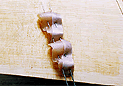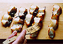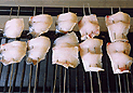 焼き上がれば金串を抜き、味醂を刷毛で塗って艶を出す。