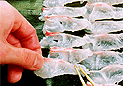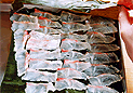 バットに昆布を敷いてその上に塩の回った鯛の身を洗わずに並べる。