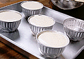 <バヴァロワを作る> 1.火からおろした鍋の中に、戻したゼラチンを加え溶かす。 2.漉したものを混ぜながら氷水に当てて冷やし、バニラエッセンスを加える。 3.泡立てておいた生クリームに、2 を加え混ぜる 4.混ざれば手早く型に流し入れる。 5.冷蔵庫で冷やし固める。 6.湯で温めて型からはずす。 7.できあがり。 お気に入りのグラスに流し固めてフルーツで飾ってもいいですね。