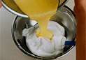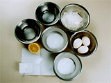 卵黄…………………………3個砂糖…………………………35g 塩……………………………ひとつまみ水……………………………50mlサラダ油……………………50ml レモンの汁…………………1/2個 レモンの皮…………………1/2個 薄力粉………………………70g ベーキングパウダー………2g卵白…………………………120g砂糖…………………………35g