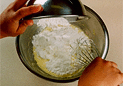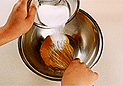 1.オーブンは180度に温めておく。2.小麦粉とベーキングパウダーは合わせてふるう。3.型の中心部分に薄くバターを塗り、紙を貼り付ける。