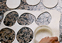 生地は、伸ばした後に冷蔵庫で一度休ませると、焼いたときに縮みにくい。大きく伸ばした生地を入れるスペースがない場合、成形してプレートに並べてから休ませる。