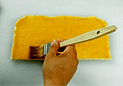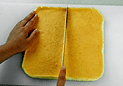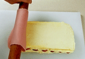 2.粉砂糖を軽くふった台の上で組み上げたケーキより一回り大きくのばす。 |