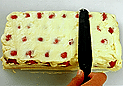 | |  | | 表面の仕上げは、マジパン以外に、いちごジャムを薄くかけてもいいでしょう。 いちごの季節が終われば、様々なフルーツ(バナナ、オレンジ、キウイ、パイナップル、黄桃などなど)を詰めても美味しく頂けます。表面の仕上げは、ホイップクリームがよく合うでしょう。 |