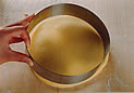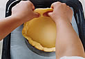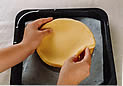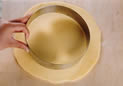 | 4. 残りの生地を、セルクルの周囲より約4p大きくのばす。 |
