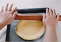 9. めん棒を使い、余分を切り落とす。 |