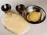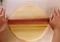 2. 打ち粉を使い、めん棒でのばす。 |