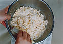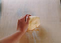 1. 冷え固まった生地の内2/5を、のばしやすい固さにまとめる。