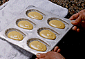 | 生地を休ませずに焼くと、ベーキングパウダーの効力が弱く、真ん中がぷっくりと膨らむ、独特の形にならない。 | | | |