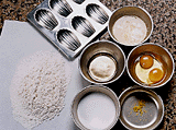 ボウル(直径24cm)…………………………1 泡立て器………………………………………1 ゴムべら………………………………………1 コルヌ…………………………………………1 絞り出し袋……………………………………1 口金(丸)……………………………………1 マドレーヌ型またはアルミカップ |