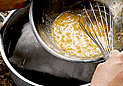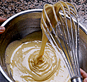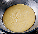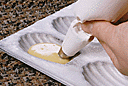 | 冷蔵庫に入れないで休めた場合、生地が柔らかいので、多少絞りにくい。口金の上の部分を摘んで、生地が必要以上に出ないように工夫するか、冷蔵庫で休ませて絞りやすい堅さにする。 | |