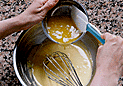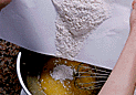 1.オーブンを170度に温める。 2.薄力粉とベーキングパウダーを合わせてふるう。 3.バターを溶かす。 湯煎 4.型の準備をする。