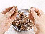 しっかりしたものであれば手でちぎっても良いが、柔らかいものに関しては崩さないように包丁を使用する。