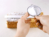 粉砂糖はそのまま振っても良いが、紙を乗せてから振るときれいな模様になる。
