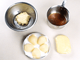 <パート・シュクレ> 無塩バター……………………………65g粉砂糖…………………………………50g 卵黄……………………………………1個卵白……………………………………15g薄力粉…………………………………130g ふるう塩………………………………………ひとつまみ 計る