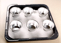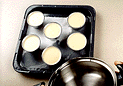 オーブンプレートにキッチンペーパー等をしき、型を並べておく。