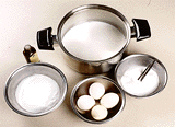 鍋 (直径18cm)………………1ボウル(直径21〜24cm)……1木ベラ……………………………1コルヌ又はゴムベラ……………1泡立て器…………………………1裏ごし器又は粉ふるい…………1プリンカップ……………………6〜8 (耐熱性なら何でも良い)オーブン…………………………1