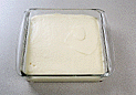 ○2.盛りつける。 1.ココアパウダーがしめってくれば食べ頃。 2.好みの大きさにスプーンなどでくり抜いて皿に盛り付けて出来上がり。