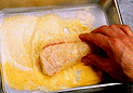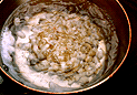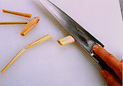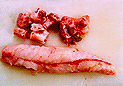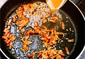 10.テフロンパンにオリーブ油を熱してエシャロットのみじん切りと細切りにしたパンチェッタを炒める。