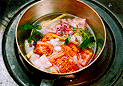 4人分 あんこう…………………1.8kg 小麦粉……………………適量 コーンミール……………適量 白いんげん豆……………100g (乾燥:手亡豆) スナックえんどう………10本 トマト(完熟)…………2個 レモン……………………1/2個 エシャロット……………1個 パンチェッタ……………100g イタリアンパセリ………適量 レモンバーム……………適量 オリーブ油………………適量 塩、こしょう……………適量 あんこうの出し汁………2cup 鶏の出し汁………………6cup レモンバーム……………1本 トマト(種の部分)……2個分 レモングラス……………2枝 あんこうの骨……………1.8kg分から