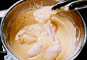 | 4.3の鍋を火にかけて温めながら、揚げた手羽を入れて表面全体に溶かしバターを からませる。 |
