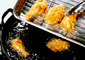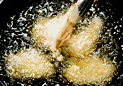 3.火が通って衣がこんがり色づいたら、取り出して油を切る。 |