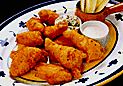 5.角切りにしたブルーチーズ、ランチドレッシング、セロリスティックを添えて盛り付ける。 |