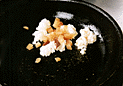 | 1.フライパンにオリーブ油とトウガラシを入れ、エビ、アンチョビ、トマトを加える。 |
