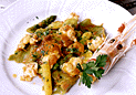 | 4.ゆでたてをフライパンに入れ、アスパラガス、そら豆といっしょにソースにからめる。 |