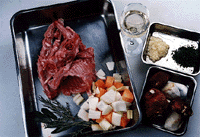 (うさぎのガラ、人参、セロリ、玉ネ ギのヘタ、香草、水2リットル)