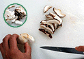 ポルチーニ茸を傘の部分はスライス、下は横にスライスしておく。