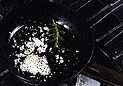 オリーブオイルを入れたフライパンに、にんにく、ローズマリーを入れ、炒める。