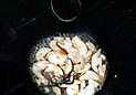 にポルチーニ茸を入れ、白ワインを入れて煮詰める。煮詰まったら、うさぎのダシ汁を入れる。