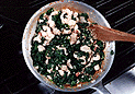 7.ほうれん草を茹でたあと、かたく絞って6に加える。 |