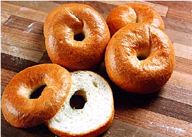 普通のパンとは違い焼く前にゆでるという操作が入ります。