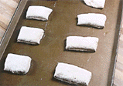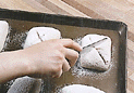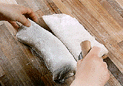 指で軽く押さえて指あとが少し残るぐらいになれば、粉を振り、ナイフで切れ込みを入れ、霧を噴いて、210℃のオーブンで約25分。