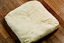 手のひらで生地を押さえ、平らにして再び軽く丸め、ビニール袋に包み0度の冷蔵庫にいれる。最低3時間、できれば15時間冷蔵するとよい。