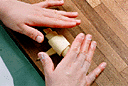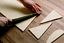 包丁で底辺が10cm、高さが15cmの二等辺三角形に切り分ける。