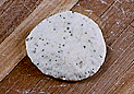 休ませた生地を上から押さえてガスを抜く。