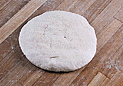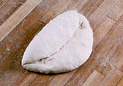 .休ませた生地を上から押さえてガスを抜き、きれいな球状に丸めなおす。