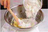 砂糖を加えて作る練り込みパイ生地。水分を加えないのでもろく、 口溶けの良いパイが出来上がる。 材料 バター…………………………250g 作り方 1.ボールに柔らかく戻したバターを入れ、粉砂糖を加える。 2.全体をよく混ぜ合わせる。 ![]() 3.小麦粉を加え、さっくりとひとつにまとめる。 ![]() 4.作業台に取り出し、手のひらですり混ぜひとつにまとめる。 ![]() 5.表面に固く絞った濡れ布巾またはラップを被せて、冷蔵庫で冷やし固める。 6.生地を軽く練り、用途に応じて伸ばして、場合によってピケして用いる。 ![]() 書名:柴田書店MOOK OYSYシリーズ OYSYケーキ 発行日:平成6年9月30日 編集人:猪俣幸子 発行所:株式会社 柴田書店 住所:・113 東京都文京区本郷3-28-8 ・03-5684-5036(営業部) ・03-5684-5028(編集部) 定価:1800円 | ||