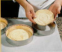 5.底にはビスキュイ・ジョコンドかスポンジ生地を敷いておく。