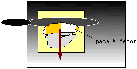 2.型紙の上にシガレット生地を置いてヘラで塗り伸ばす。