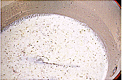 1. 鍋に牛乳・バニラの莢を入れ沸騰直前まで温める。