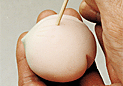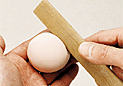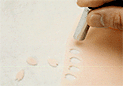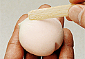 | 9. 竹べらを使い、細く短い筋を3本入れる。 |