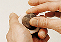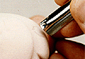 | 6. 三角棒で半円を描く様に切れ目を入れる。 |